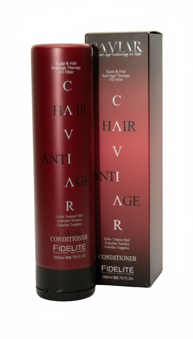 El Acondicionador Anti Edad con Caviar para Cabellos Teñidos de Fidelité está especialmente formulado para cuidar y prolongar la vitalidad del cabello con color. Su fórmula con extracto de caviar ayuda a combatir los signos del envejecimiento capilar, aportando nutrición profunda, suavidad y brillo intenso.