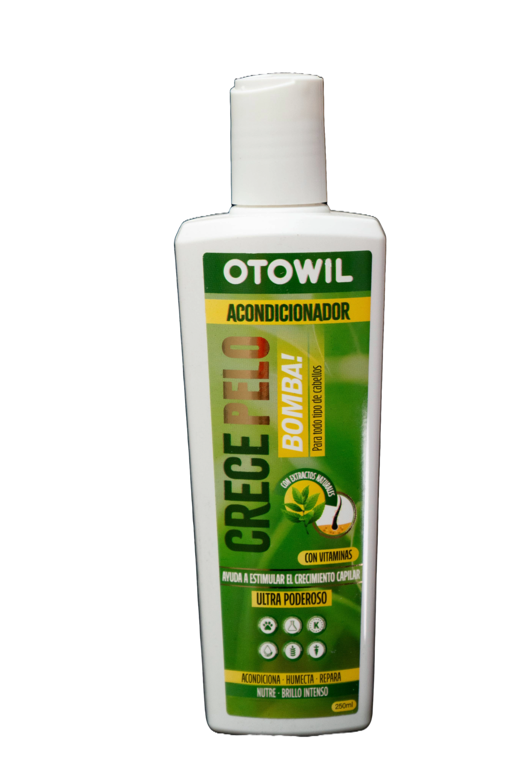 El Acondicionador Otowil Crecepelo Bombai está formulado con extractos naturales y vitaminas, especialmente desarrollado para estimular el crecimiento capilar y mejorar la salud del cabello desde la raíz hasta las puntas. Su fórmula ultra poderosa acondiciona profundamente, ayudando a fortalecer, humectar y reparar el cabello dañado.
