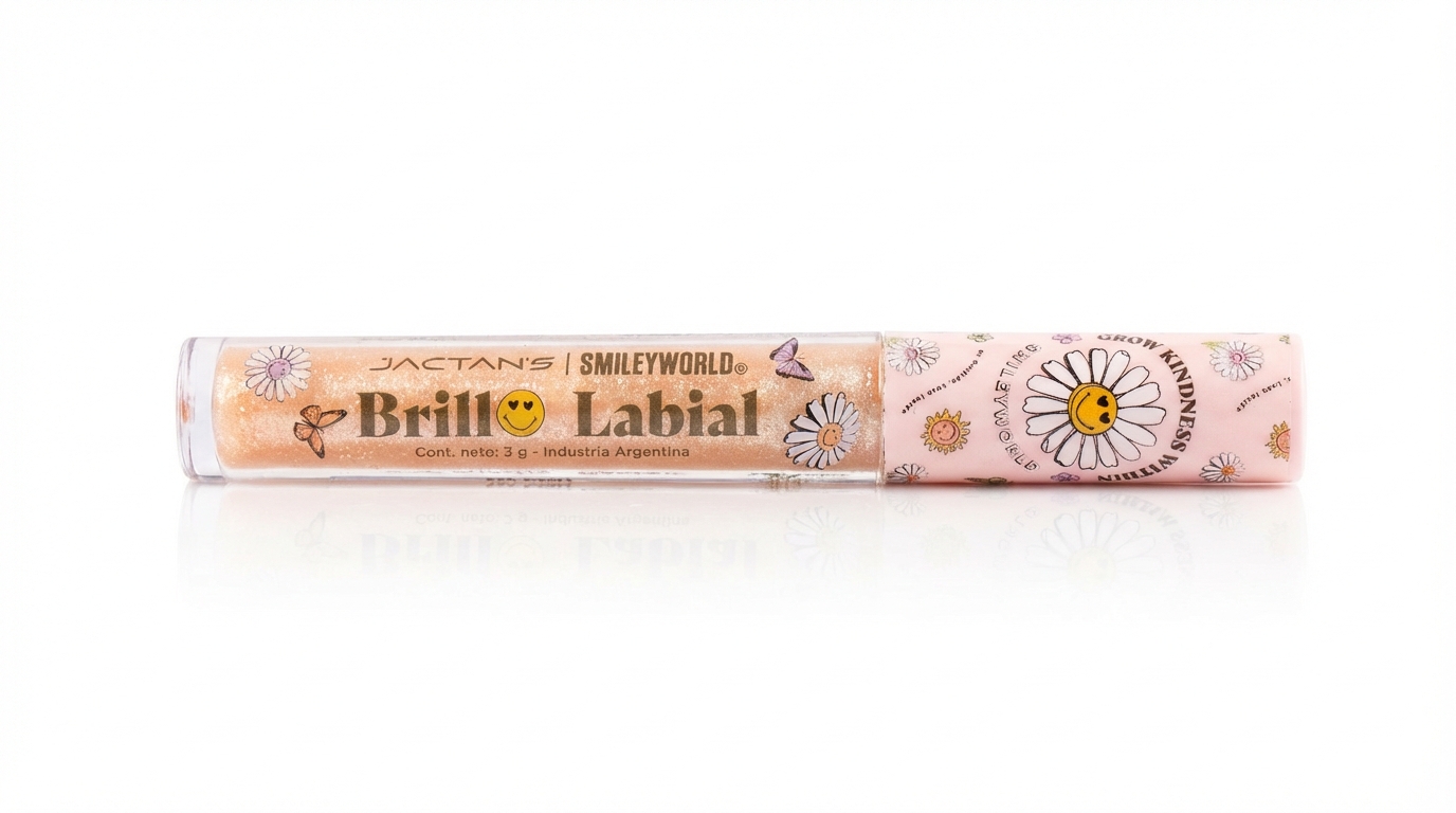 El Brillo Labial Smiley Jactans es un cosmético labial diseñado para aportar brillo intenso, hidratación y un acabado jugoso y saludable a tus labios. Su fórmula ligera y no pegajosa permite usarlo solo o sobre tu bálsamo/lipstick favorito, ofreciendo un look fresco y juvenil con un toque de color sutil y luminoso.