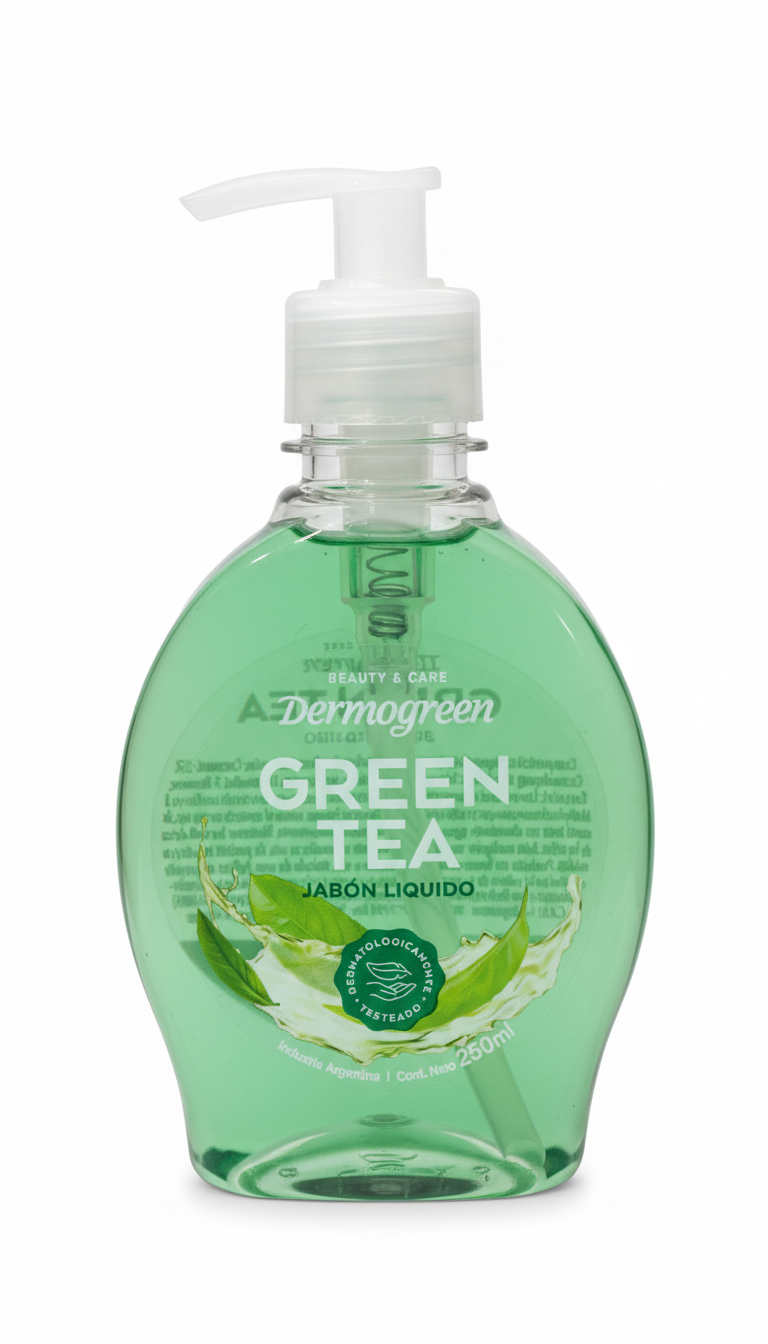Dermogreen Jabón Líquido Green Tea x250 ml es un jabón líquido corporal con una fragancia fresca de té verde que limpia delicadamente la piel mientras la mantiene suave y confortable. Su fórmula en gel produce una espuma suave que ayuda a eliminar impurezas sin resecar la piel, ideal para el uso diario en la ducha o el baño.