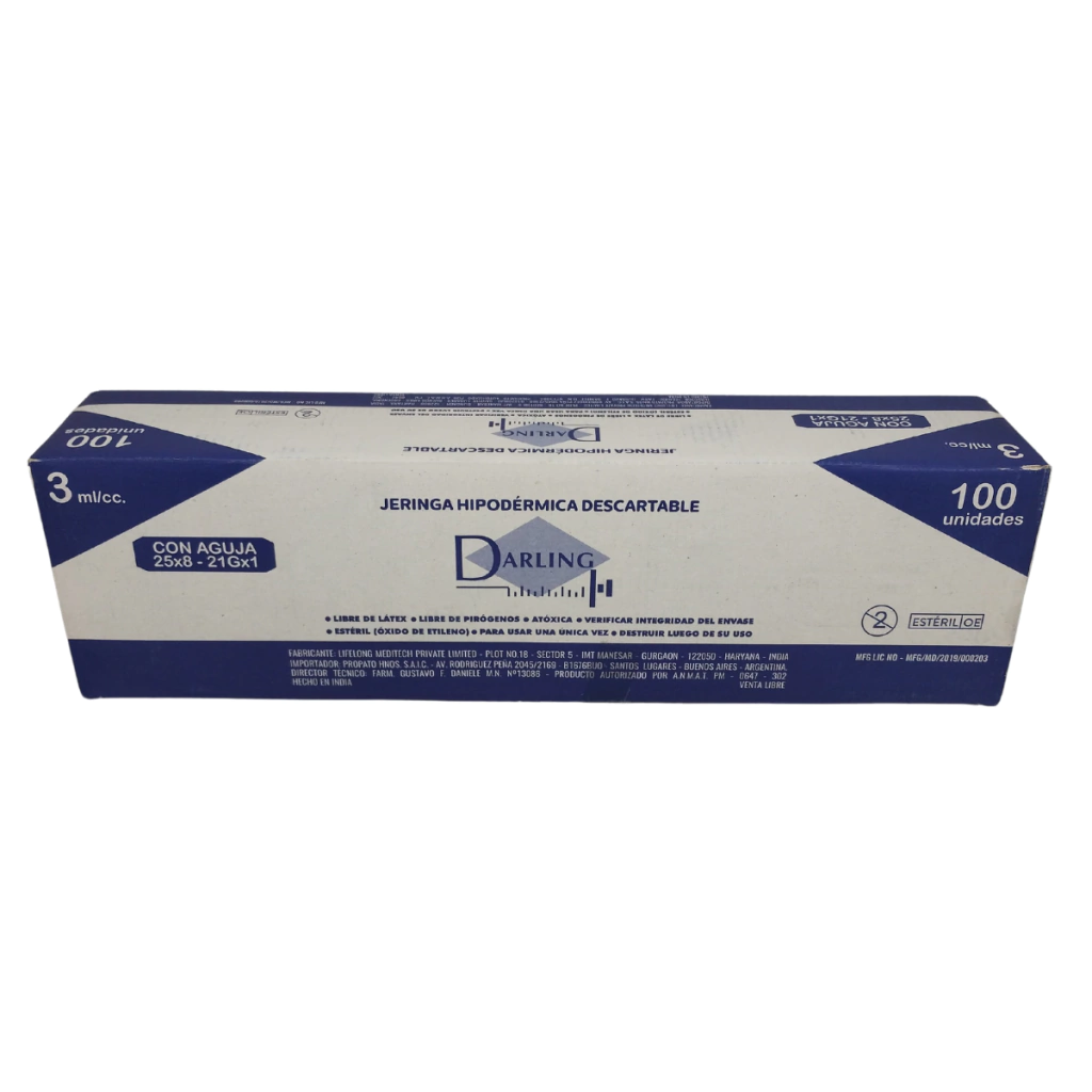 Caja x100 unidades – Jeringas descartables con aguja 3 cc, prácticas y seguras para uso profesional