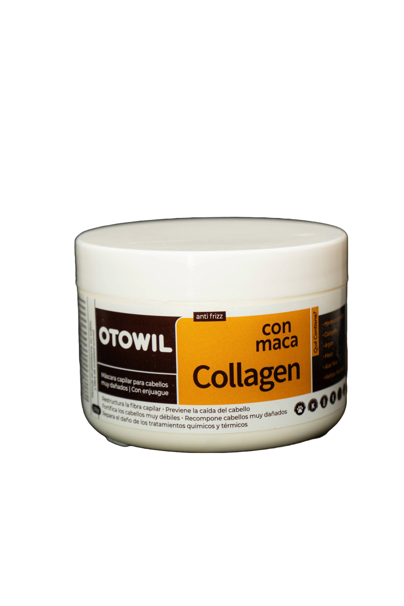 La Máscara Capilar Otowil Collagen con Maca está especialmente formulada para el cuidado intensivo del cabello muy dañado. Su fórmula anti frizz, con colágeno y extracto de maca, actúa profundamente sobre la fibra capilar, ayudando a reconstruir, fortalecer y reparar el cabello desde el interior.