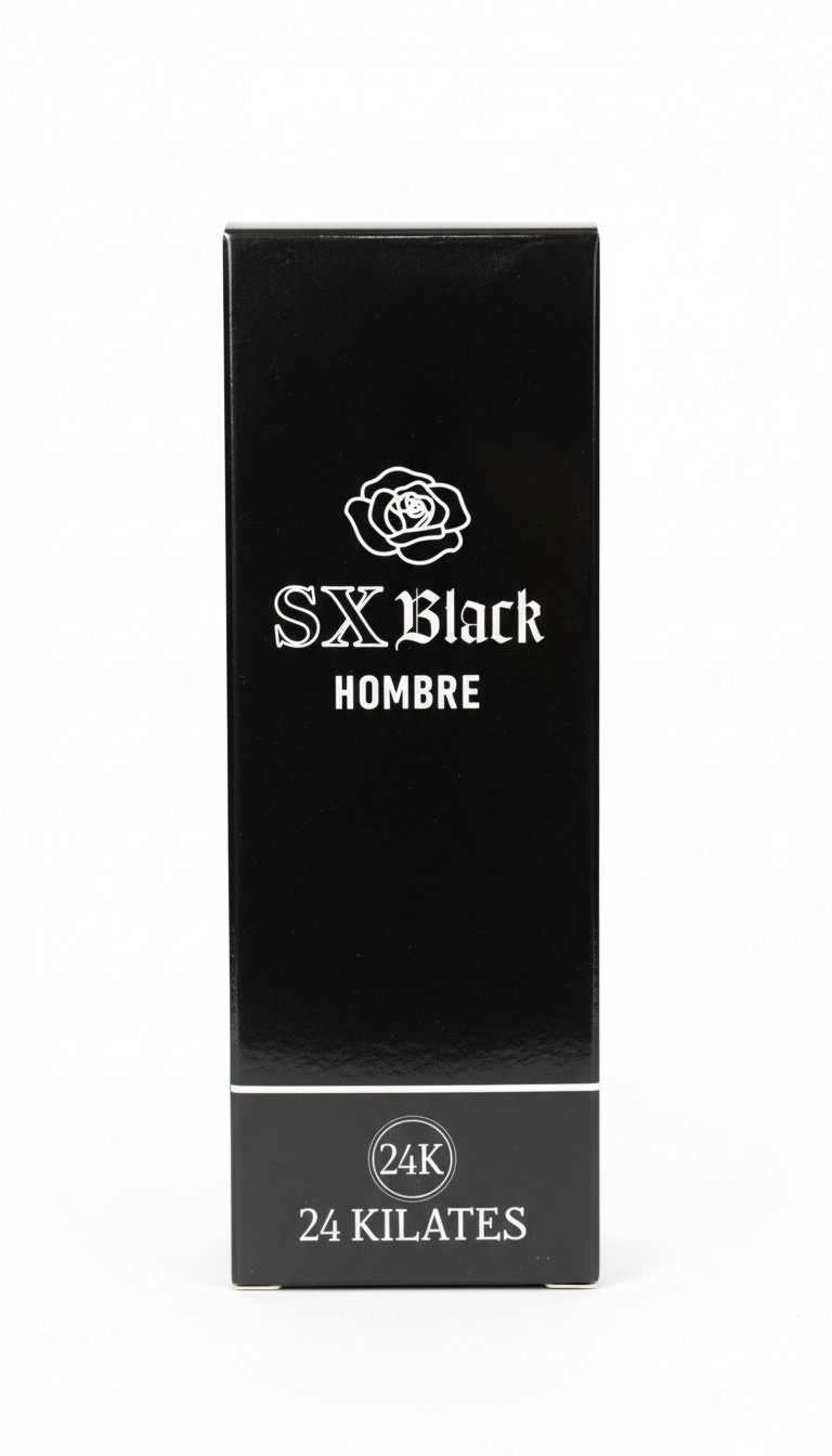 Perfume SX Black 24 Kilates 50 ml: Fragancia masculina con aroma potente, de gran fijación y proyección duradera.
