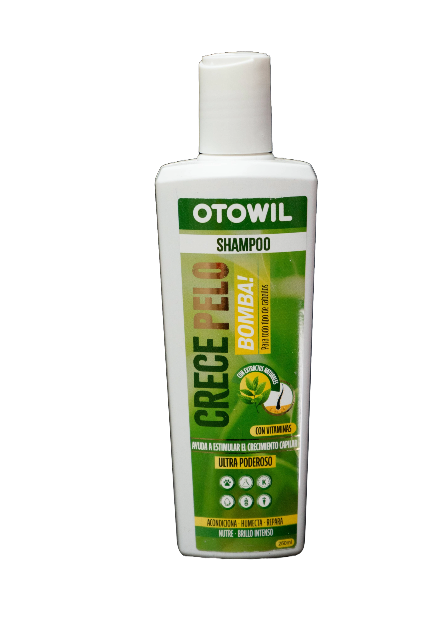 El Shampoo Otowil Crecepelo Bombai está formulado con extractos naturales y vitaminas, especialmente diseñado para estimular el crecimiento capilar y fortalecer el cabello desde la raíz. Su fórmula ultra poderosa limpia suavemente mientras acondiciona, humecta y repara la fibra capilar.